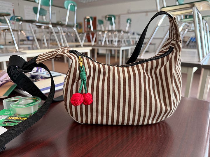 Novelty keychains. My favorite one is this cherry one made from paracord that I got for less than $10 off Etsy. It just looks cute and makes me happy!