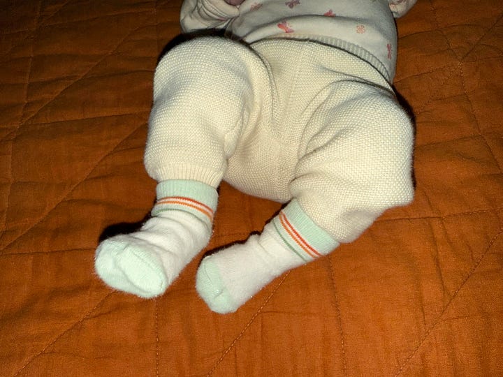 Having my mom stay with us when Georgia was about four weeks old. There is plenty of parental content online about rules for visiting a baby, helping postpartum moms, etc., and I will add that it is frustrating how the help and check-ins drop off so drastically after the first few weeks! When Ari was born, my mom flew out within two days of his delivery. I was in too much of a postpartum haze (and pandemic panic) to fully appreciate her support. This time around, I asked her to come when Jonny returned from his first round of paternity leave (he will take another 12 weeks when I return to work in February). I think immediate help is necessary with a first birth, but given that I had a smooth recovery, I didn’t find myself needing whole lot of outside help until right about when she showed up. While she was here, she held baby Georgia for hours, planted tulips in my front yard, went on walks with me, had a guest room sleepover with Ari, cooked me dinner and froze me the leftovers, and kept me company for many hours of nursing. It was great!